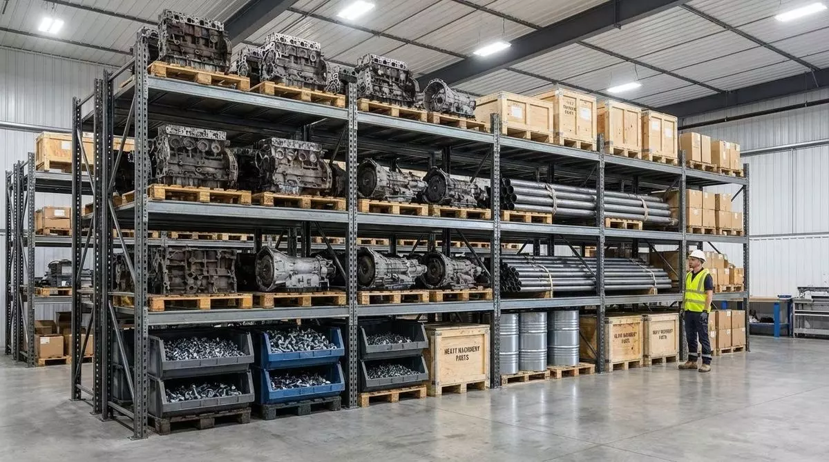 Организуйте складское пространство двухуровневой системой: грузовые стеллажи для мелких и разнородных деталей, паллетные стеллажи для крупных и массовых материалов. Это позволит оптимизировать как пространство, так и логистические процессы.