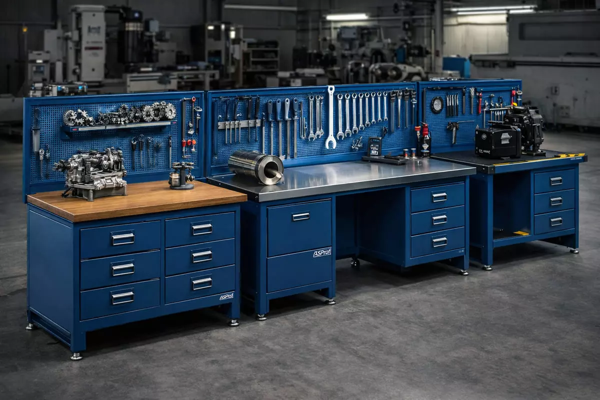 Металлические верстаки здесь часто выступают как элемент системы: несколько одинаковых постов, унифицированная оснастка, одинаковое размещение инструмента.
