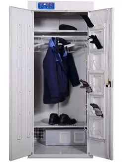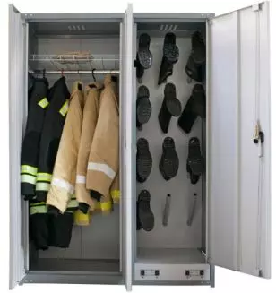 Этот шкаф позволяет сушить до 8 комплектов формы даже в случае сильного намокания. Подходит для служб спасения, военных подразделений, строительных компаний.