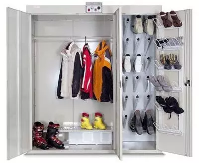 Этот шкаф можно использовать как для сушки 4 комплектов зимней одежды, так и для 8 комплектов летней формы.