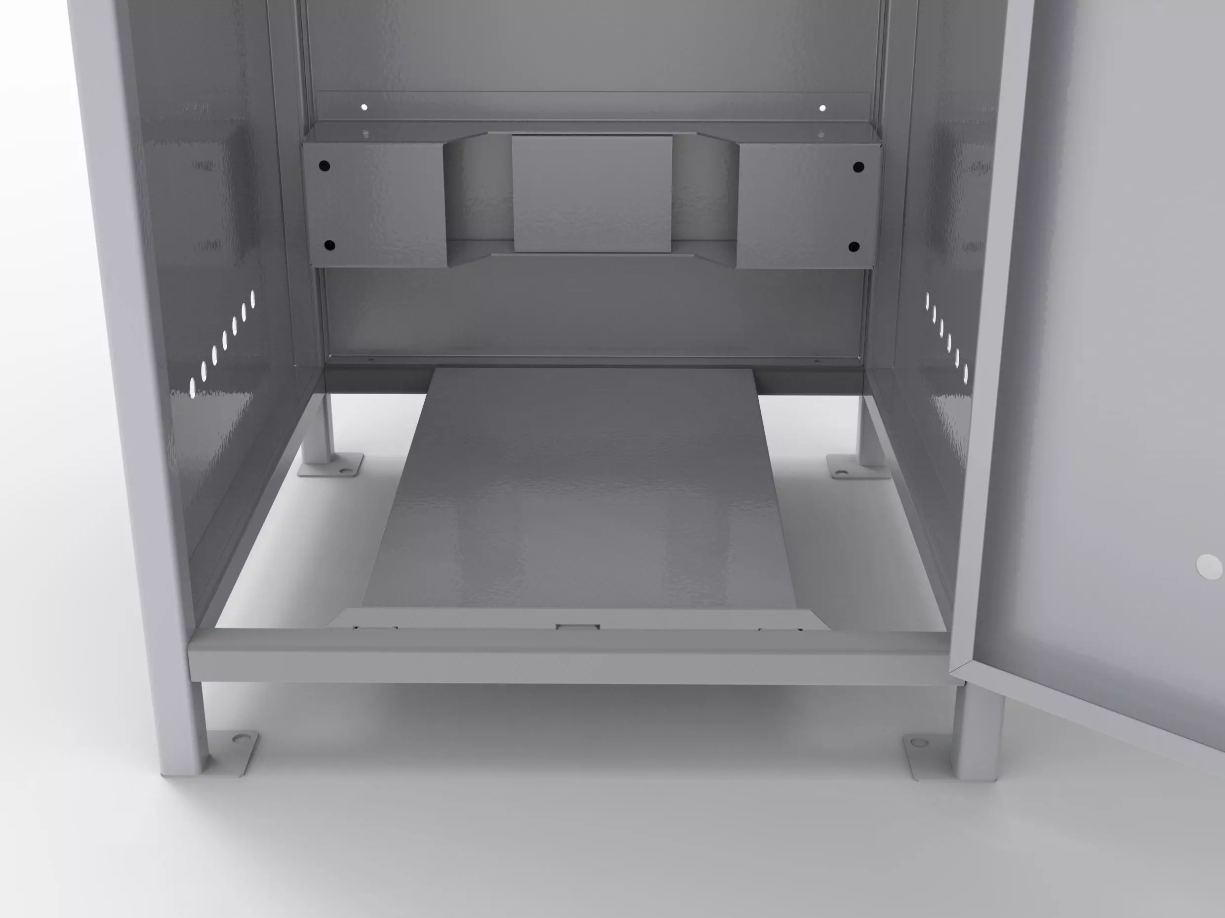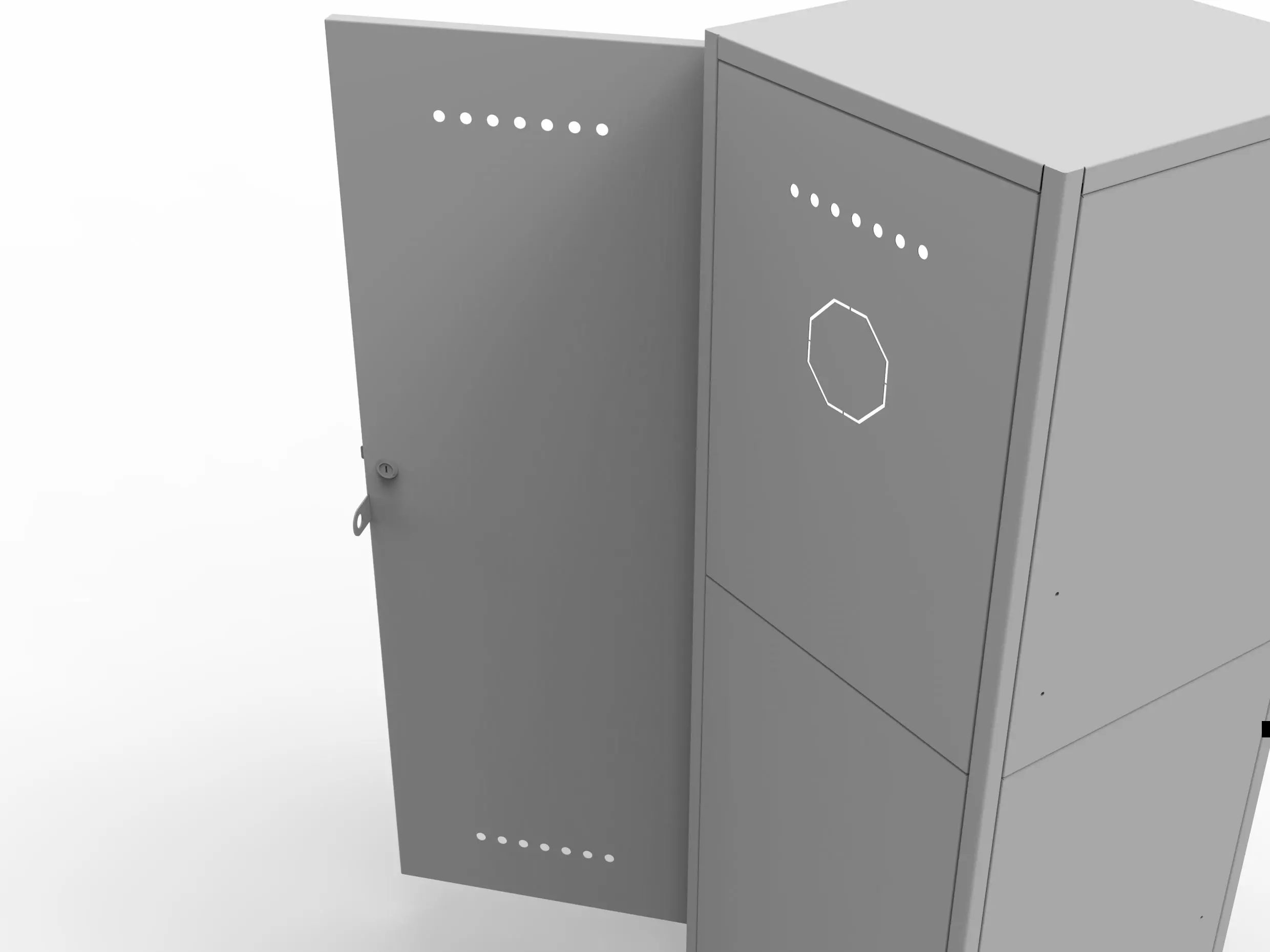 - Для обеспечения вентиляции в боковинах шкафа и в двери сверху и снизу предусмотрена перфорация.