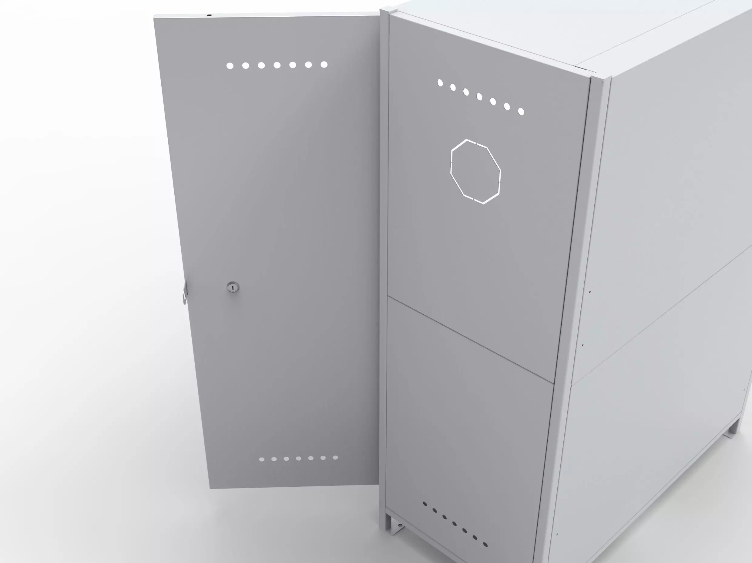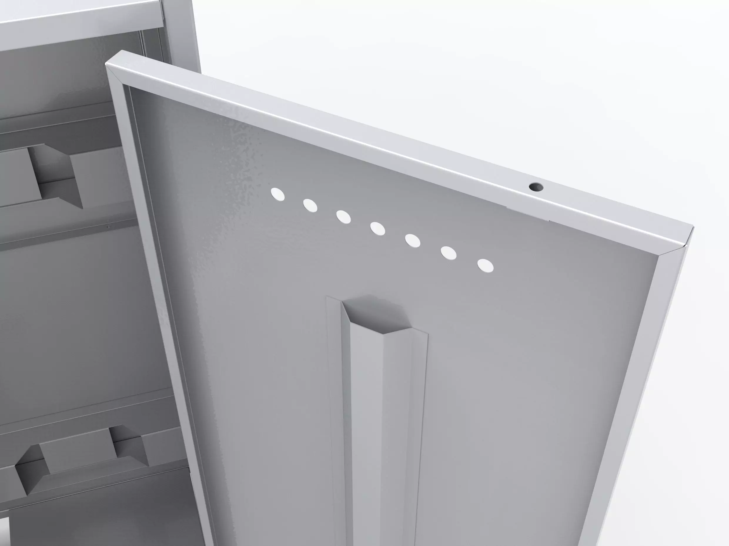 - Для обеспечения вентиляции в боковинах шкафа и в дверях сверху и снизу предусмотрена перфорация.