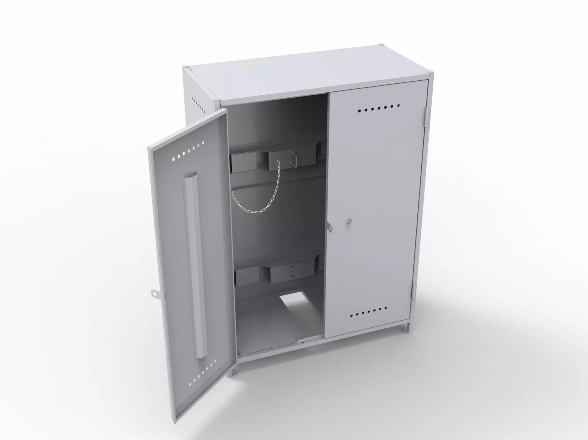 Шкаф ШГм-2 предназначен для безопасного и удобного хранения до 2-х газовых баллонов высотой 950 мм и шириной до 300 мм.