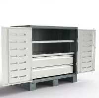 1 секция, 1 ригельный замок-ручка, 2 съемных полки, 3 ящика |