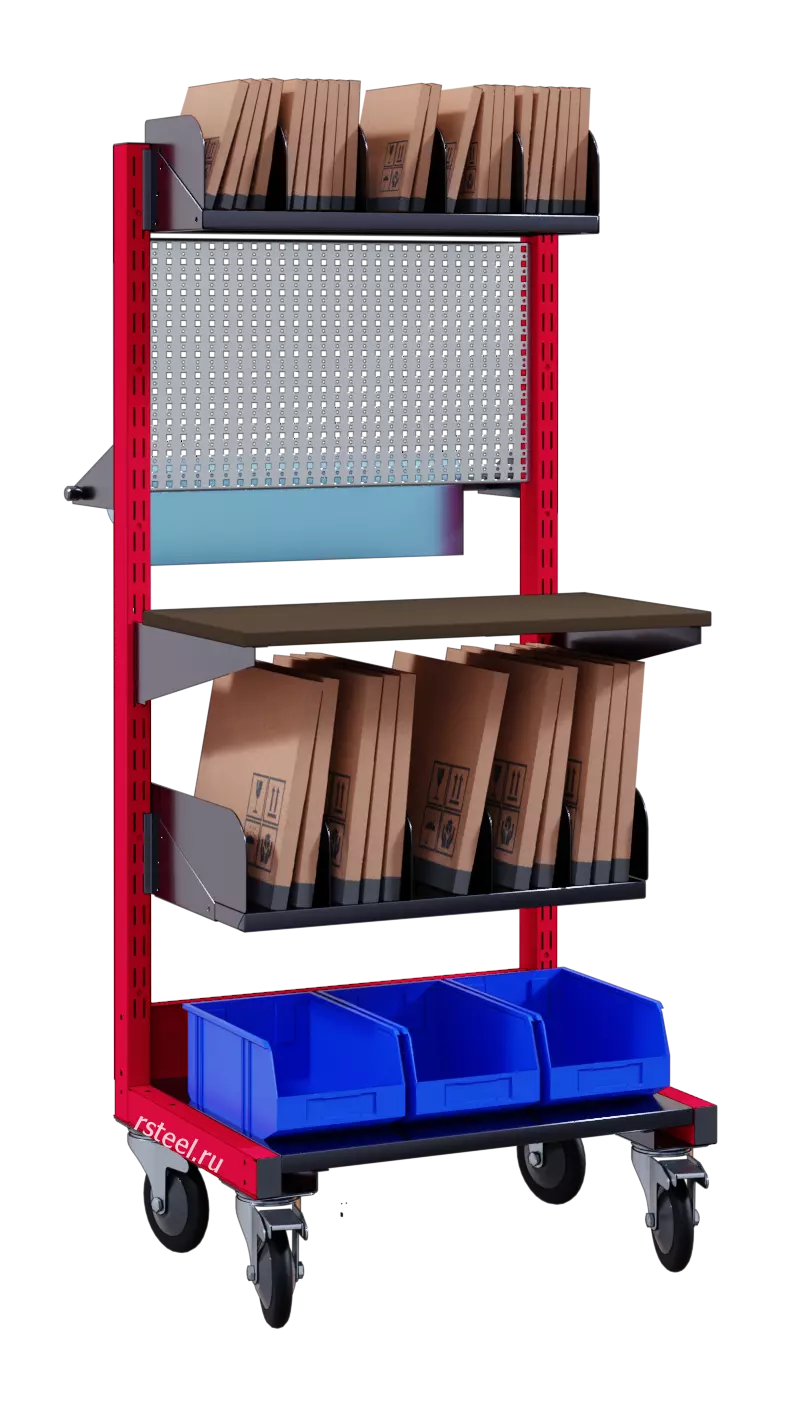 В комплект входят: - 1 комплект Г-образных стоек-опор; - 2 полки наклонных 70х30 см (в верхней части стойки); - 10 делителей ; - 1 перфопанель 70х40 см ; - 1 держатель рулонов (закреплен сзади стойки); - 1 столешница из ЛДСП 90x45 см; - 1 полка горизонтальная 70х45 см (в нижней части стойки); - 1 полка горизонтальная в основании; - 4 колеса d125. |