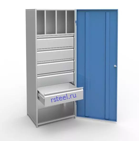 корпус и ящики - серый (RAL7035), дверца - синий (RAL5015) |