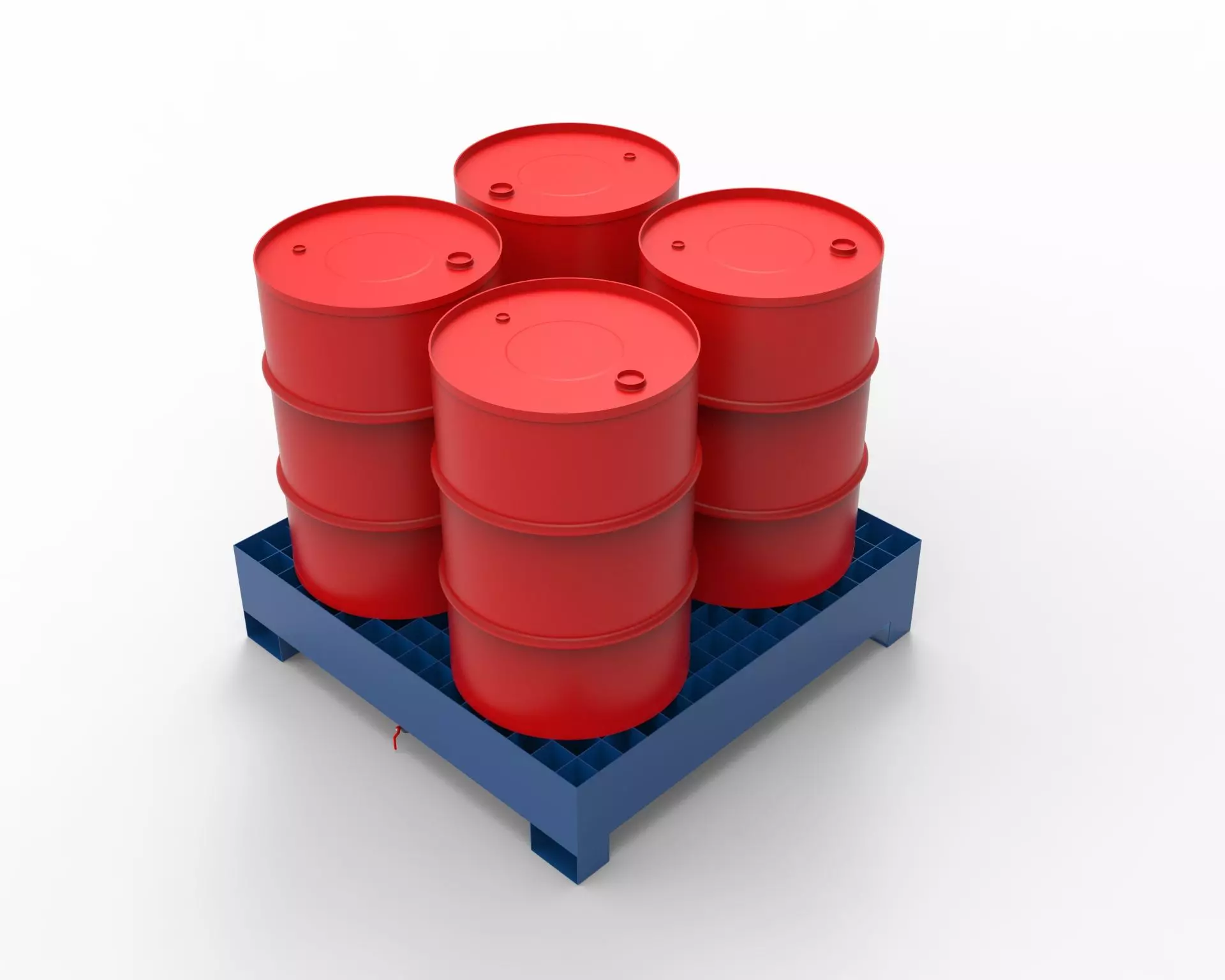 Поддон металлический для хранения и перемещения до четырех бочек емкостью 200 л. и собранных внутрь поддона жидкостей. Грузоподъемность поддона - до 500 кг распределенной нагрузки. В нижней части поддона предусмотрено резьбовое отверстие с установленным шаровым сливным краном для слива собранных жидкостей.