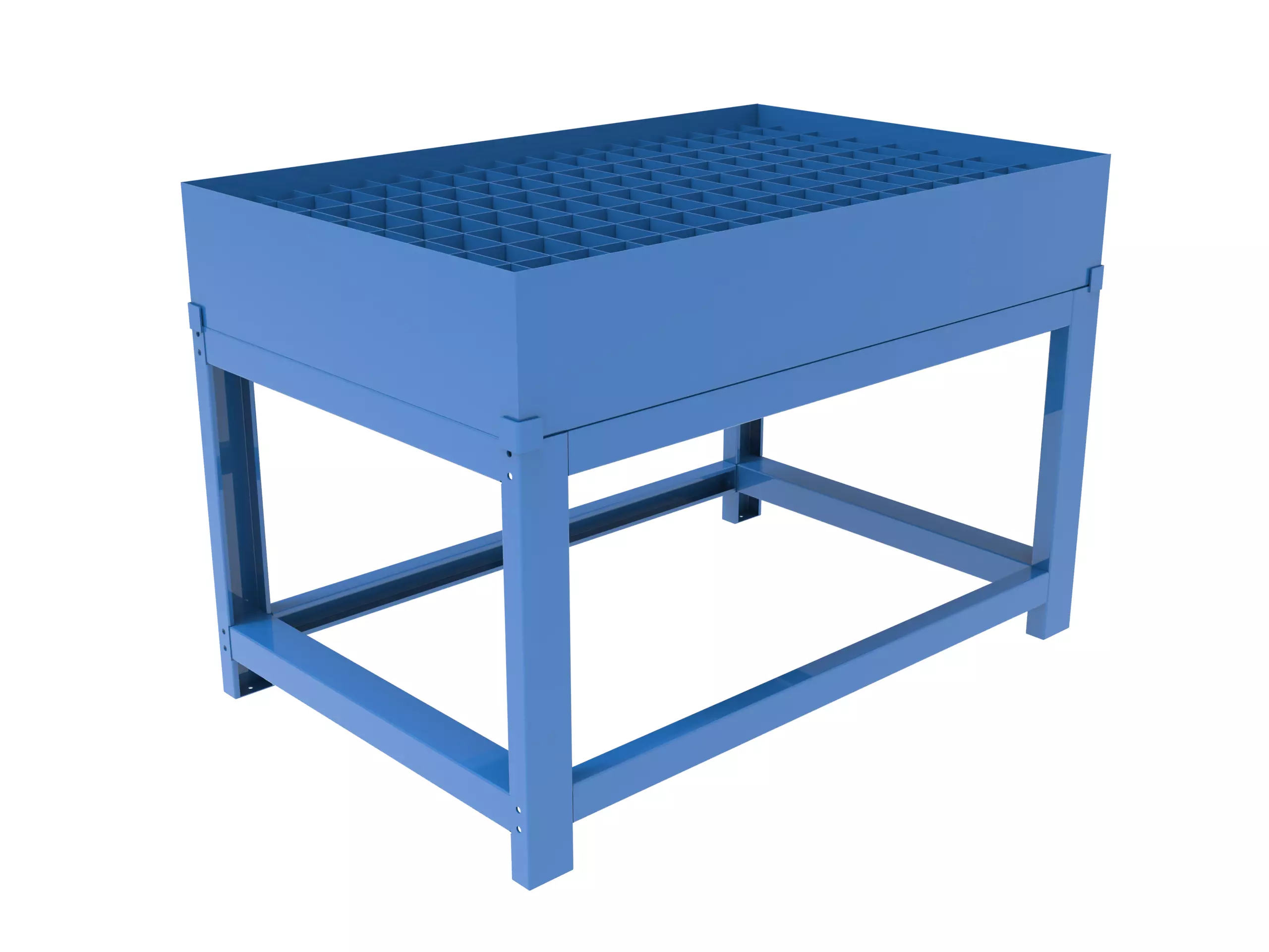 Сварной металлический поддон предназначен для безопасного хранения и межоперационного перемещения узлов и деталей станков с ЧПУ. Конструкция адаптирована для работы в условиях машиностроительных производств, обеспечивая сбор и слив технологических жидкостей (СОЖ, масел).