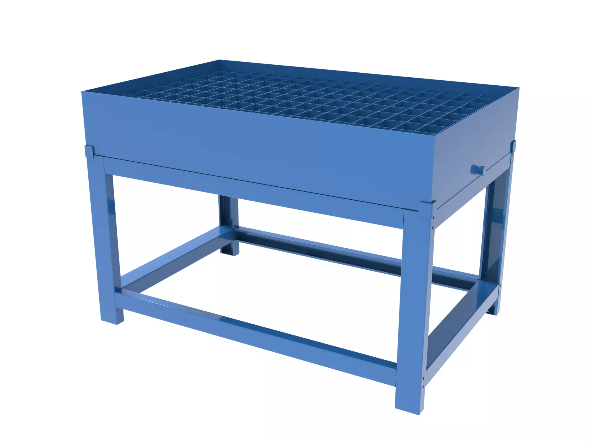 - Съемная решетка: Внутри установлена стальная решетка с пазами (толщина металла 2 мм) для устойчивого размещения емкостей и деталей.