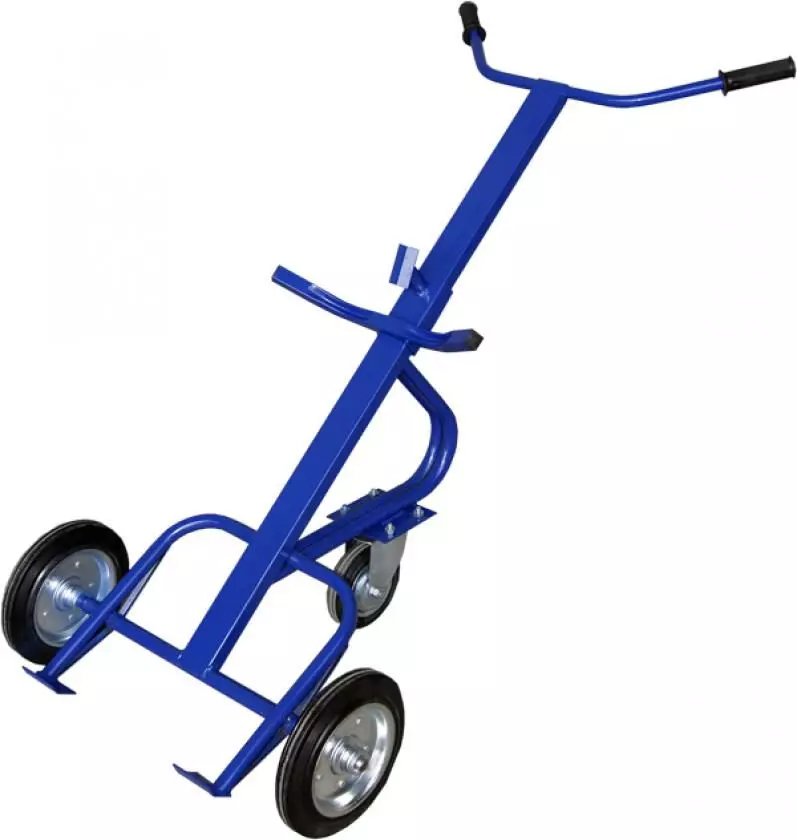 Тележка грузовая для перевозки металлических бочек. 2 колеса - пневматические d250мм + дополнительное опорное колесо Ф160мм.
