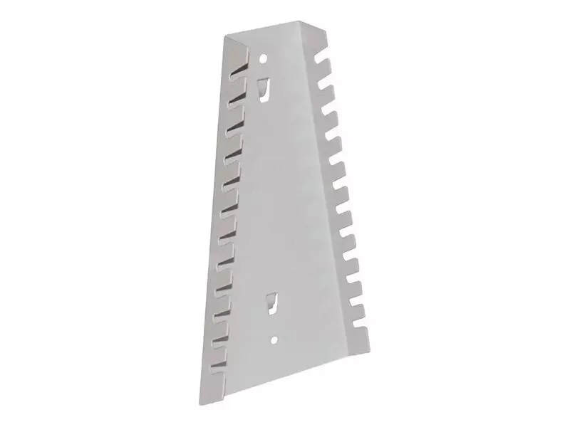 Металлический держатель для 12 рожковых гаечных ключей. Держатель можно навесить на перфорированный экран или прикрепить его на вертикальную поверхность при помощи гвоздей, саморезов и т. п.