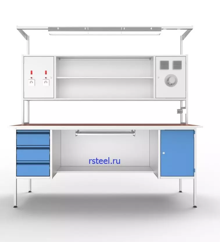 - Каждая модель стола представляет собой полноценное рабочее место: за счет различных комбинаций систем хранения ваши специалисты смогут удобно расположить инструмент и увеличить скорость своей работы;