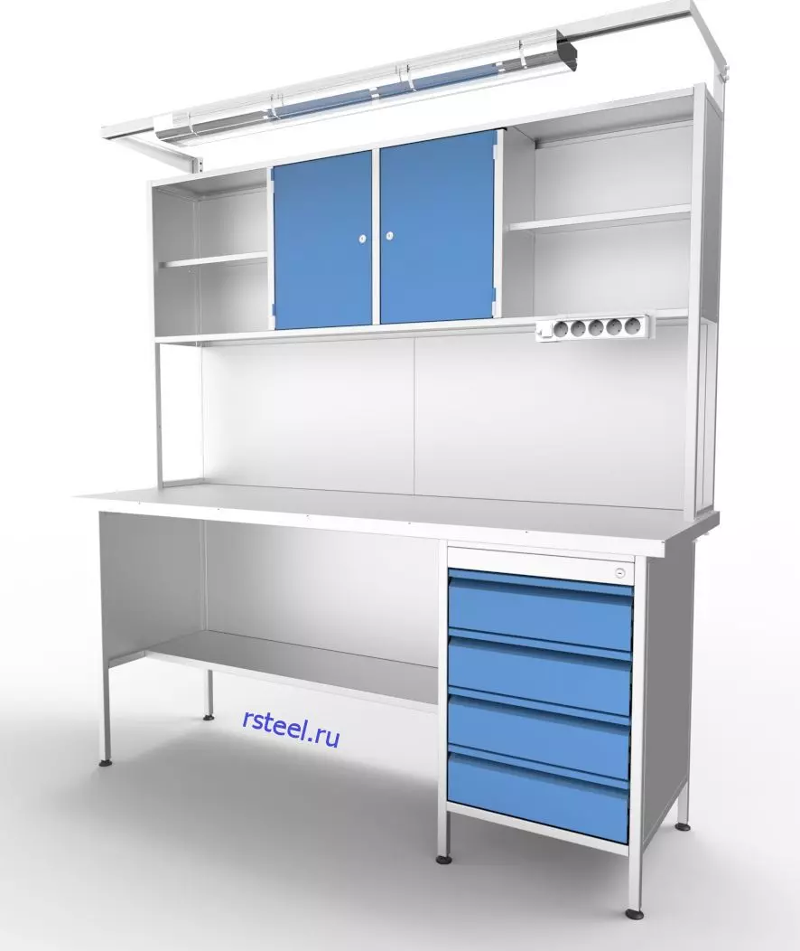- Каждая модель стола представляет собой полноценное рабочее место: за счет различных комбинаций систем хранения ваши специалисты смогут удобно расположить инструмент и увеличить скорость своей работы;
