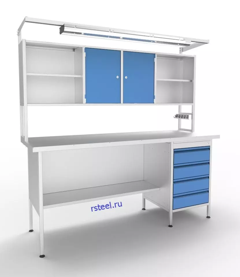 - Каждая модель стола представляет собой полноценное рабочее место: за счет различных комбинаций систем хранения ваши специалисты смогут удобно расположить инструмент и увеличить скорость своей работы;