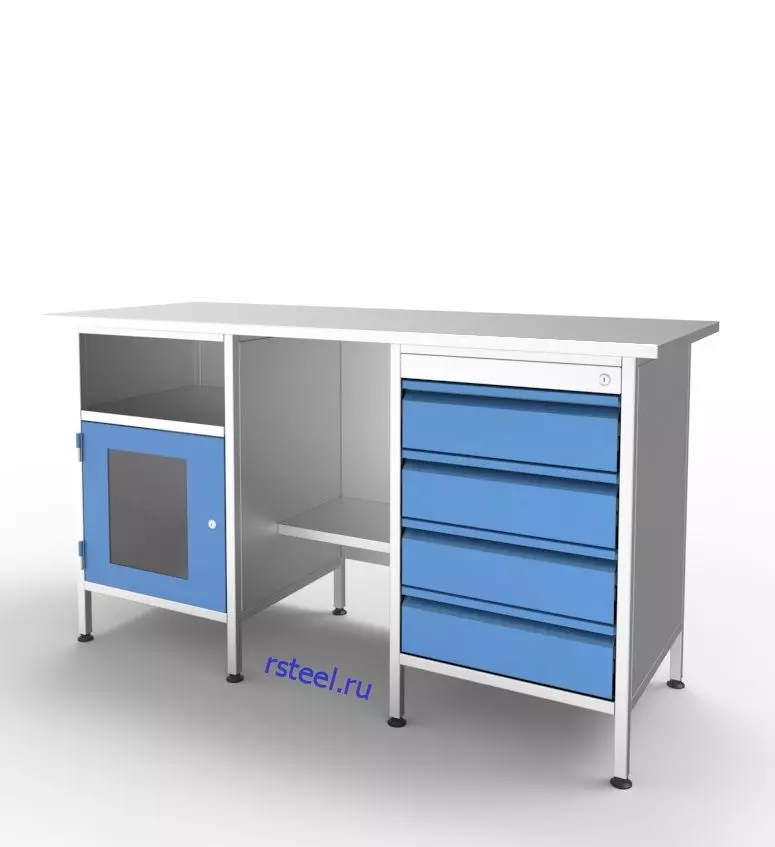 - Каждая модель стола представляет собой полноценное рабочее место: за счет различных комбинаций систем хранения ваши специалисты смогут удобно расположить инструмент и увеличить скорость своей работы;