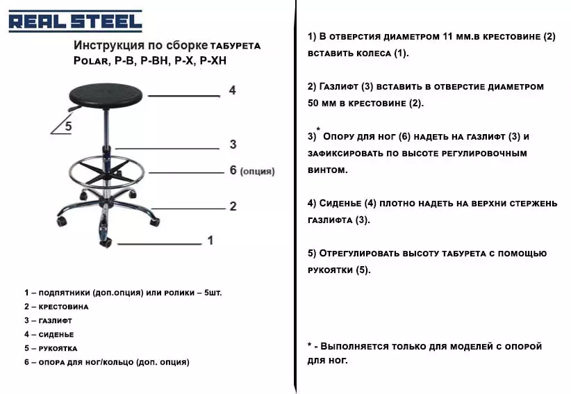 Сиденье: износостойкий полиуретанКолеса нейлон/пластик или опоры-заглушки, на хроме - полиамид / нерж. заглушки в основании.