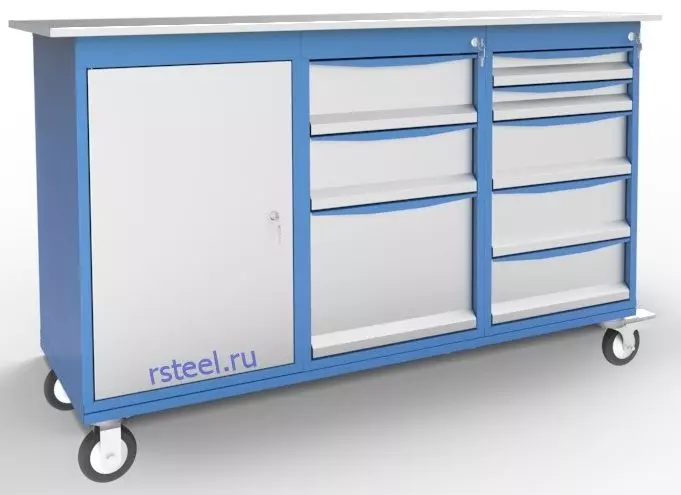 Столешница и ящики - RAL 7035 (светло-серого цвета) , корпус - RAL 5015 (синего цвета) |