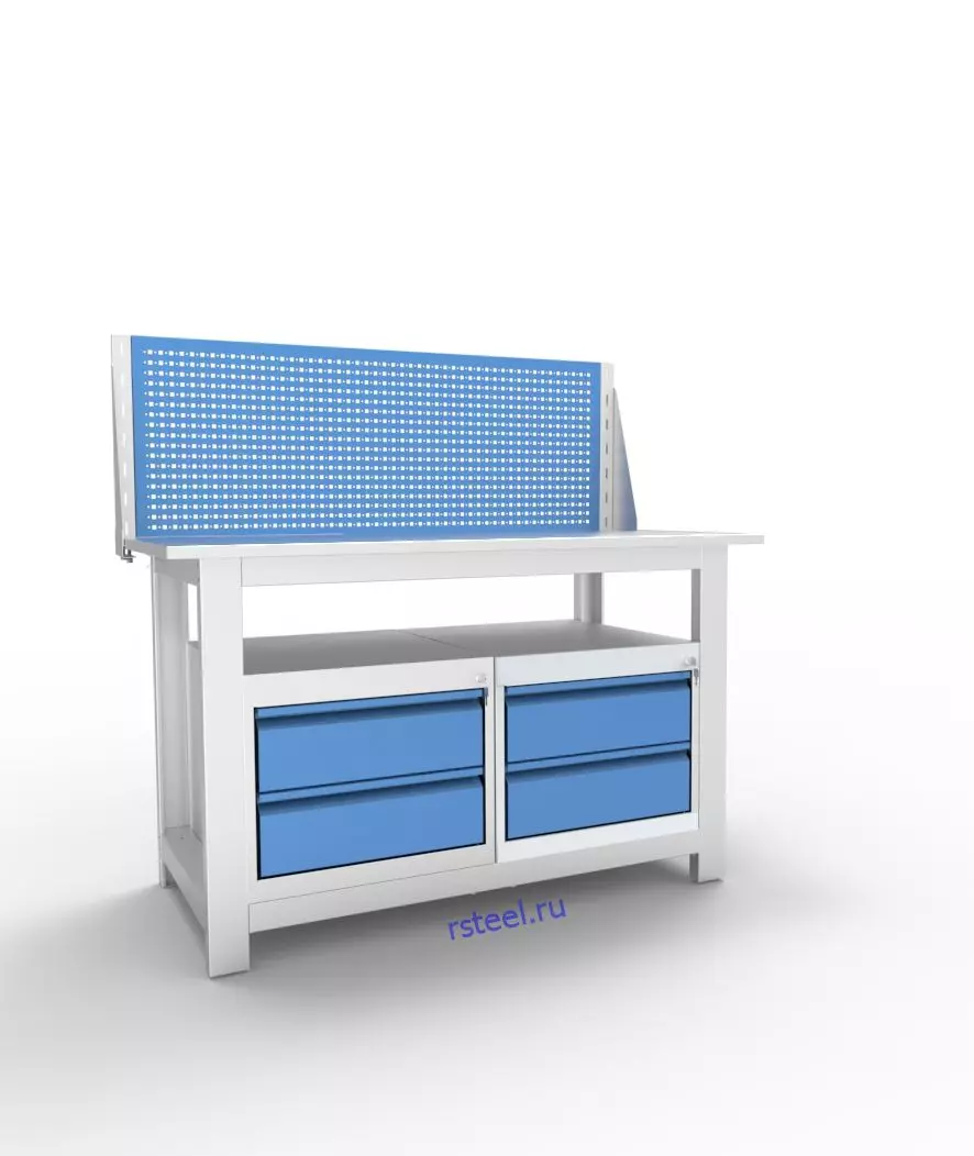 Слесарный верстак профессиональной серии предназначен для обустройства рабочих мест в цехах заводов и промышленных предприятий. За счет крепкой конструкции из сварных тумб и стальных опор, конструкция изделия выдерживает распределенную нагрузку до 3 000 кг (итоговые нагрузочные характеристики изделия зависят от выбранного типа столешницы).
