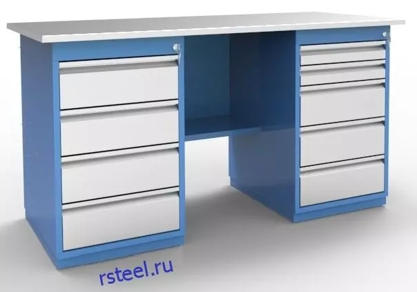Столешница и ящики - RAL 7035 (светло-серого цвета) , корпус - RAL 5015 (синего цвета) |