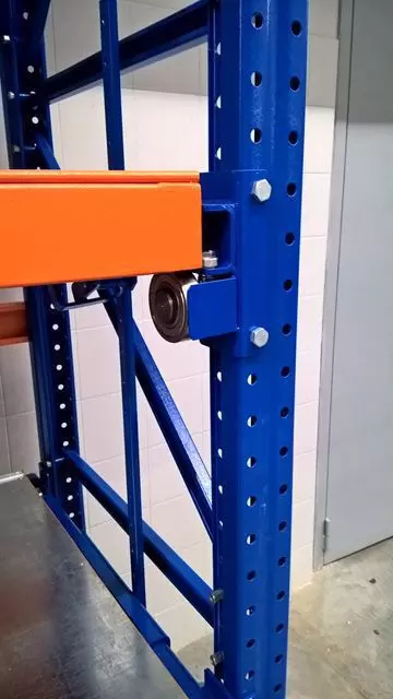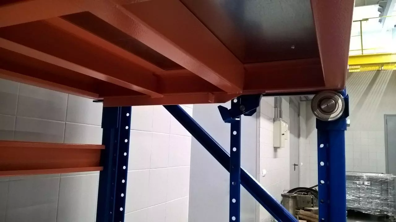 - Требовалось изготовить специальные стеллажи с выкатными полками для штамповок и заготовок. Важная деталь: выкатные платформы должны выдвигаться полностью, чтобы обеспечить удобство и безопасность захвата продукции с помощью кран-балки. При этом вес одного изделия достигает 150 кг, а стандартная конструкция стеллажа не может обеспечить такой грузоподъемности полки, особенно в выдвинутом состоянии. Было необходимо предложить уникальное конструкторское решение.