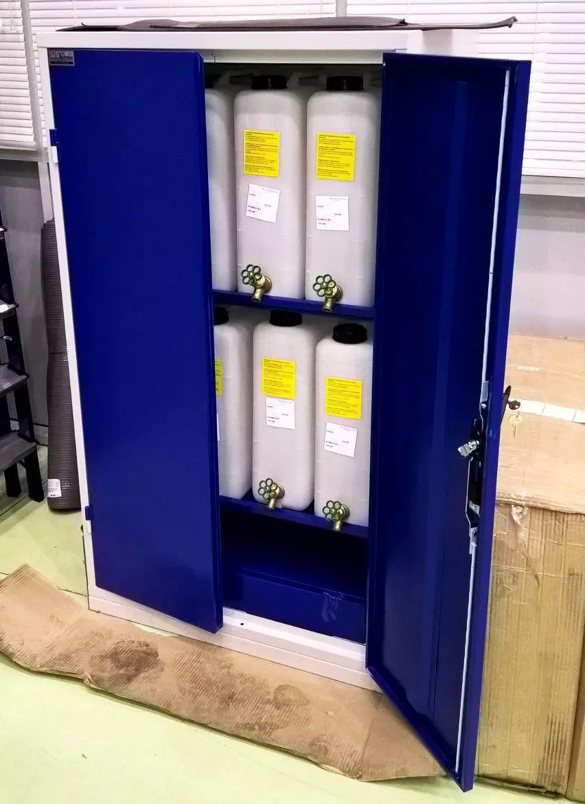 - Необходимость изготовления специального шкафа для хранения машинного масла. Подобного изделия не было в каталоге ни у одного производителя, поэтому требовалось его изготовление под заказ.