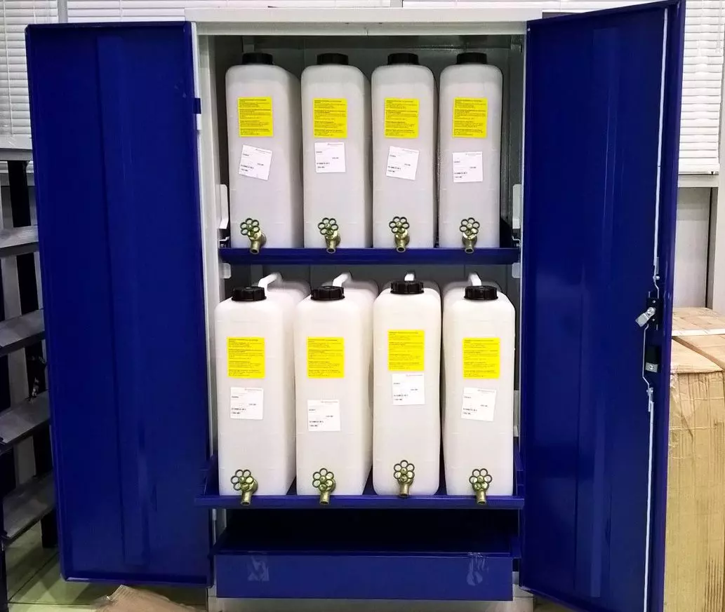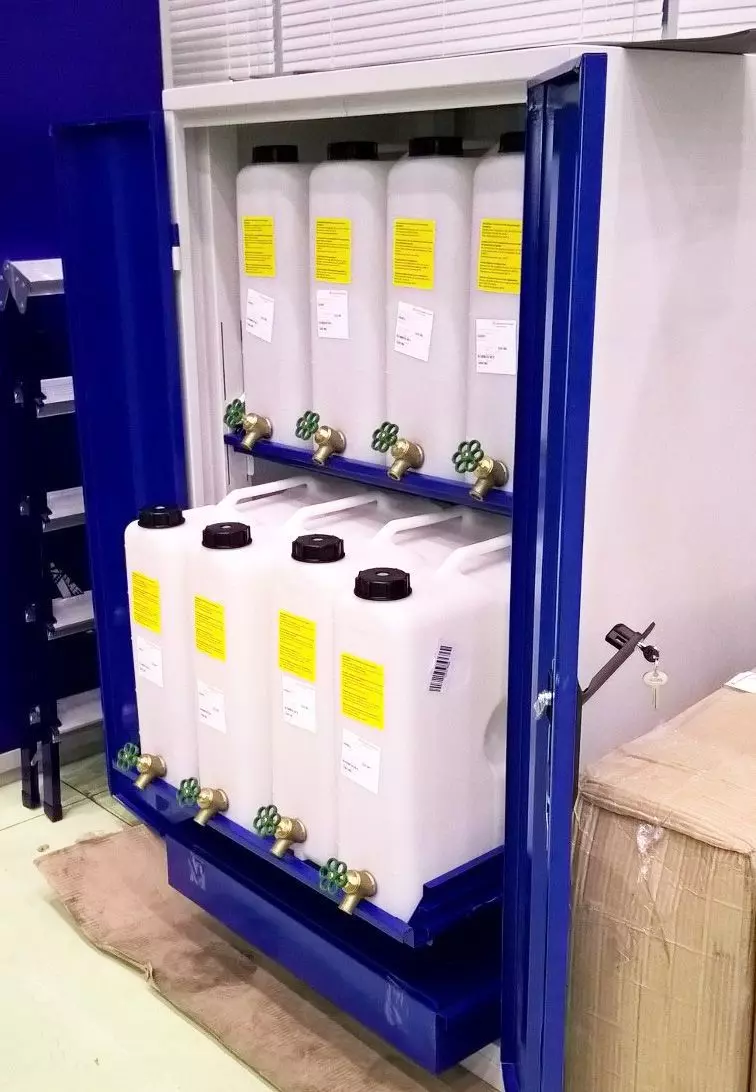 - Разработали уникальную модель шкафа для хранения машинного масла с учетом размеров используемых канистр, а также эргономики его эксплуатации.